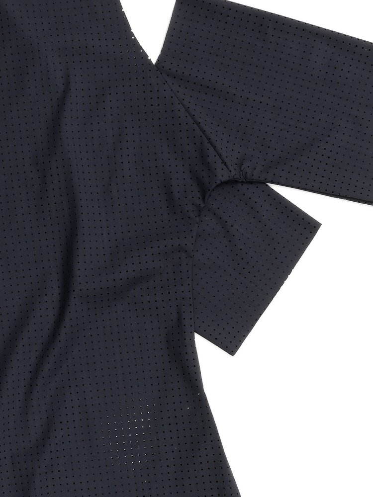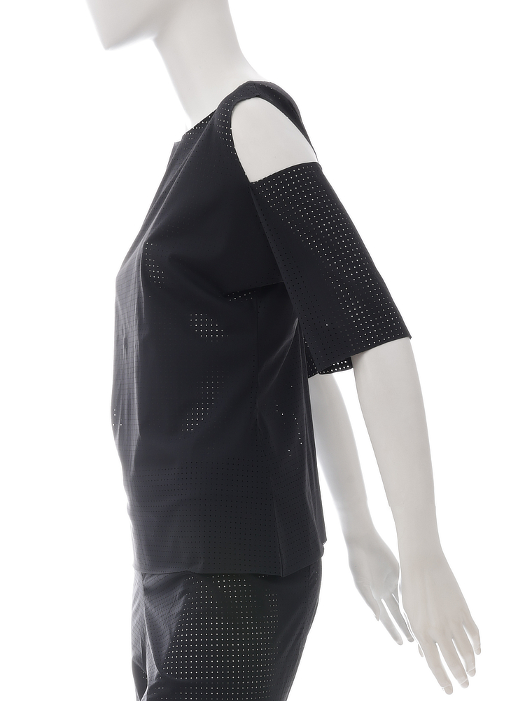 (en) show a little skin in just the right place? absolutely! super comfortable shirt in a perforated design. paired with the matching leggings, a guaranteed eye-catcher